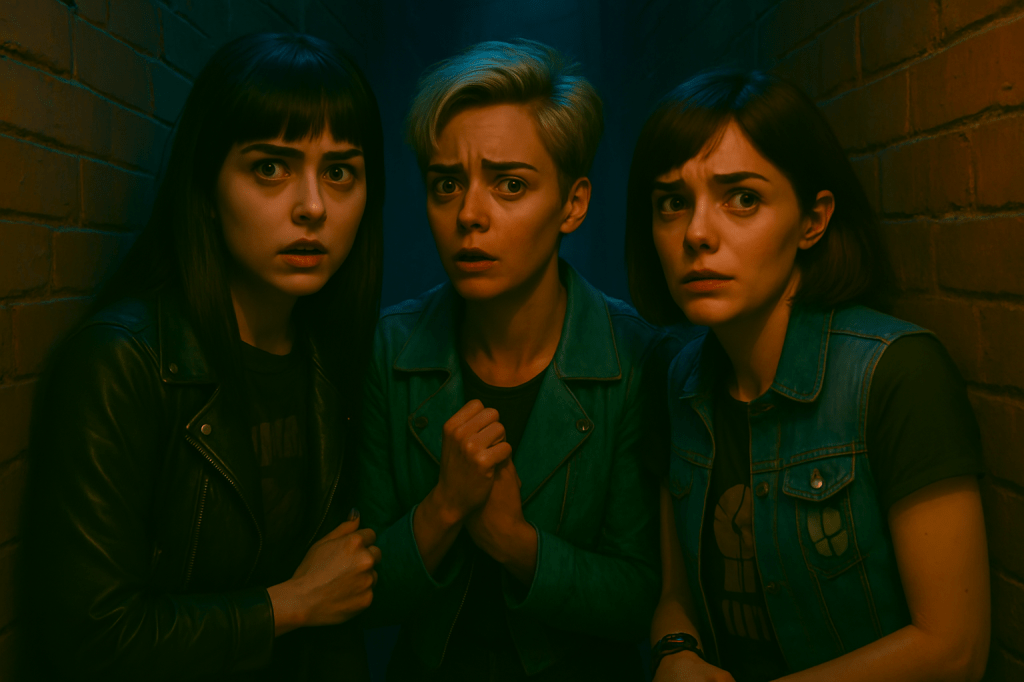Depois de um tempo, encontramos Drika e Stella. Vicky simplesmente disse às duas que nós daríamos uma volta; elas concordaram e marcaram de se ver mais tarde. Assim, finalmente, saímos do Blackout Lab.